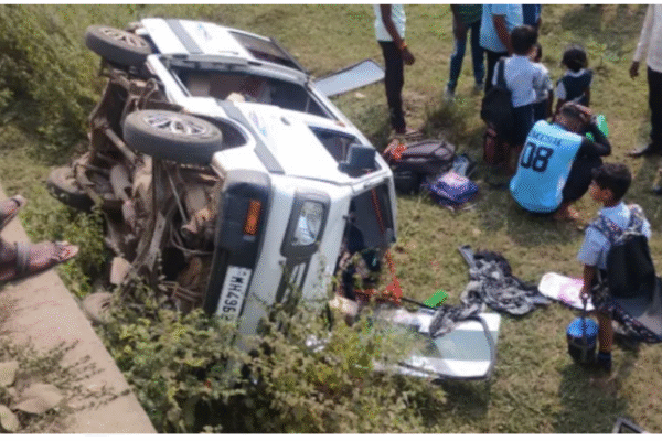 The incident took place at Surewara in Bhandara district. The children were returning home from school through a road full of potholes. As the driver tried to avoid the craters, he lost control of the vehicle and it fell off a low bridge. The children suffered injuries and were rushed to the district hospital.