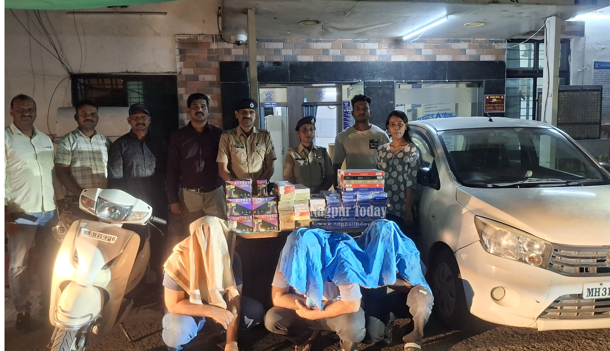 Near Orjas Hospital, the police identified a suspect matching the description provided by the informant. He was riding a white Honda Activa bearing registration number MH-31-EL-4516. Upon being stopped and questioned, the individual identified himself as Mukesh Ramesh Chavhan, aged 41, a resident of Shanti Nagar, MHADA Colony in Nagpur. After informing him of the purpose of the search, police conducted a vehicle inspection in the presence of witnesses. During the search, a red bag was found in the front footrest area of the scooter, containing boxes of cigarettes. Further inspection of the scooter’s storage compartment revealed additional stock packed in large plastic sacks.