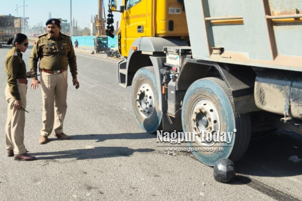 The incident took place around 1:20 pm, when a truck bearing registration number MH40 CT 7574, heading from Bhandara towards Tarodi Puliya, hit a two-wheeler (MH49 BX 1813) about 50 metres from the Kapsi Puliya traffic check post. The motorcycle got trapped in the truck’s front wheel and was dragged forward, creating panic among commuters.