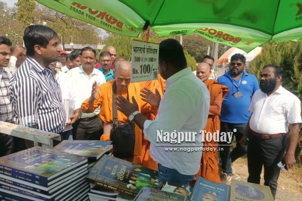 नागपूर– भारतीय संविधानातील आतिल पृष्ठांवर जाहिरात प्रकाशित करून त्या प्रतींची विक्री करणाऱ्या दोन्ही दुकानदारांना परमपूज्य डॉक्टर बाबासाहेब आंबेडकर स्मारक समिती, दीक्षाभूमीने बाहेर केले. स्मारक समितीचे अध्यक्ष तथा धम्म सेना नायक भदंत आर्य नागार्जुन सूरेई ससाई यांनी या संवेदनशील प्रकरणाची गंभीर दखल घेतली आणि दीक्षाभूमीत पोहोचले.
