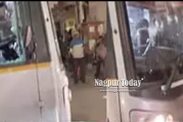 नागपूर : शहरात आपली बस सेवेवर अज्ञातांनी अचानक हल्ला केल्याने एकच खळबळ उडाली आहे. लकडगंज पोलिस स्टेशनच्या काही अंतरावर ही घटना घडली. बस वर्धमाननगरहून लकडगंजकडे जात असताना दोन अज्ञात व्यक्तींनी हातोडीने बसच्या काचांवर जोरदार वार केले.
