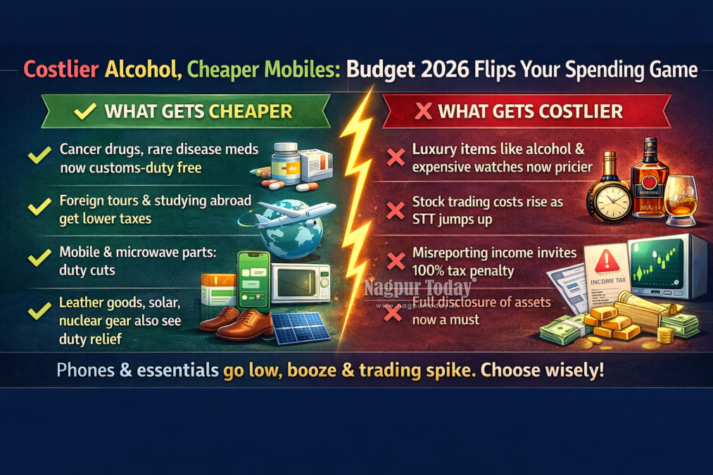 New Delhi: Union Budget 2026 just rewired everyday expenses—making healthcare, gadgets, travel, and education lighter on the wallet, while alcohol, luxury goods, and stock trading get pricier.