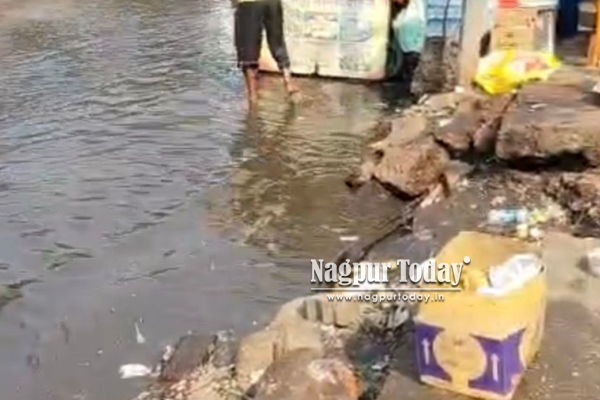 Nagpur: Commuters entering and exiting Nagpur Railway Station through its west gate are facing daily hardship due to recurring waterlogging, even in the absence of rainfall. The situation has emerged amid the ongoing station redevelopment work, which passengers allege has turned a key access point into a persistent problem zone.