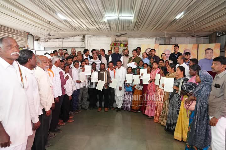 नागपूर : कोराडी येथील जनसंपर्क कार्यालयात ‘सर्वांसाठी घरे’ या महत्त्वाकांक्षी योजनेअंतर्गत नागपूर जिल्ह्यातील परसाड व तरोडी गावांमधील ५२ पात्र लाभार्थ्यांना गृहपट्ट्यांचे वितरण करण्यात आले. या कार्यक्रमाचे उद्घाटन महसूल मंत्री चंद्रशेखर बावनकुळे यांच्या हस्ते पार पडले.