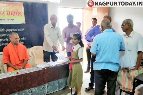 गुरुवार (दि.१) ला रामकृष्ण मठ नागपुर व्दारे पंडित जवाहर नेहरू विद्यालय कन्हान येथील इयत्ता ५ वी व ६ वी च्या गरजवंत विद्यार्थ्यांना रामकृष्ण मठाचे स्वामी ब्रम्हानंद महाराज यांच्या हस्ते श्री मस्के सर यांच्या अध्यक्षेत आणि प्रमुख अतिथी श्री देव, श्री साटोकर, श्री ढोले, श्री शेंडे व संस्थेचे सचिव श्री मनोहरराव कोल्हे आदी च्या उपस्थित गणवेश वाटप करण्यात आले.
