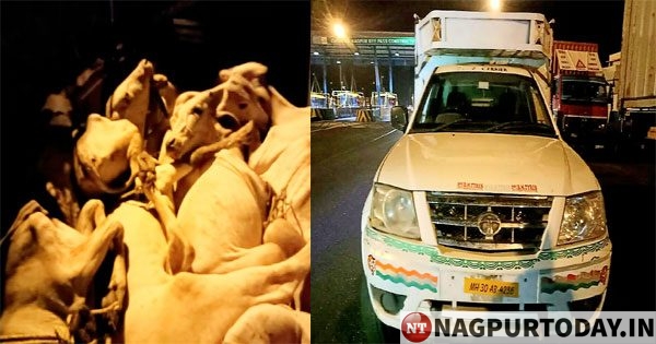 कन्हान : – पोलीस स्टेशन अंतर्गत नागपुर जबलपुर राष्ट्रीय महामार्ग क्र ४४ वरील बंद टोल नाका वराडा येथे सापळा रचुन पिकअप झेनॉन (टाटा) चारचाकी वाहनात निर्दयपणे कोबुन भरून ११ जनावरांची (गाईची ) अवैध वाहतुक करून कत्तल खाना कामठीकडे नेताना पोलीसांनी डुमरी वरून पाठलाग करित बंद टोल नाका येथे पकडुन ११ गाईना जिवनदान देऊन पिकअप चारचाकी वाहनासह एकुण ५ लाख ८० हजार रुपयांचा मुद्देमाल जप्त करून वाहन चालक आरोपींला अटक करण्यात आली आहे.