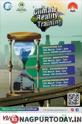 Nagpur: Global Shapers Community, a World Economic Forum initiative, is an international organization with presence in 386 cities across 171 countries. Nagpur Hub is a part of this global network of change makers committed to building a clean and equal world. Nagpur hub is a youth run organization that is currently engaged in 7 social impact projects, ranging from blood donation & menstrual hygiene to social entrepreneurship & urban mobility. The hub is all set to launch a unique initiative that aims at creating awareness about climate change and build a 100% climate literate Nagpur city. In this endeavor, for first time in Central India, Climate Reality Presentation & Conference is being organised.
