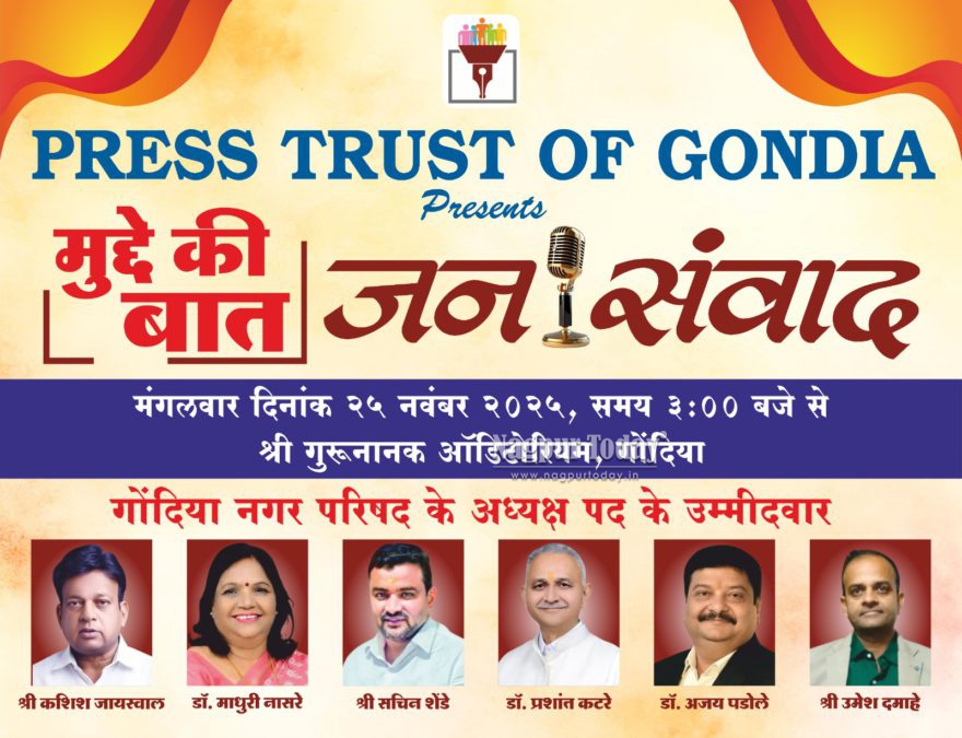 आज मंगलवार 25 नवंबर शाम 3 बजे से गुरु नानक स्कूल ऑडिटोरियम (गांधी प्रतिमा के पास) में प्रेस ट्रस्ट ऑफ गोंदिया लेकर आ रहा है ऐसा मंच जिसका इंतज़ार हर मतदाता को था यहां होगी सीधी “मुद्दे की बात : जन संवाद”।
