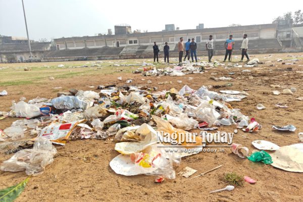 लगातार शिकायतों के बाद नागपुर टुडे की टीम ने 24 फरवरी सोमवार सुबह स्टेडियम का दौरा कर हालात का जायज़ा लिया। मैदान में शराब की टूटी बोतलें, कांच के टुकड़े, फेंके गए पत्तल-डिस्पोजल और जूठन के ढेर साफ दिखाई दिए। पुलिस भर्ती हेतु शारीरिक परीक्षा की तैयारी कर रहे युवाओं और खिलाड़ियों ने नगर परिषद प्रशासन की लापरवाही पर नाराजगी जताई। उनका कहना है कि “अगर यही हाल रहा तो खेल प्रतिभाएं कैसे आगे बढ़ेंगी ?”