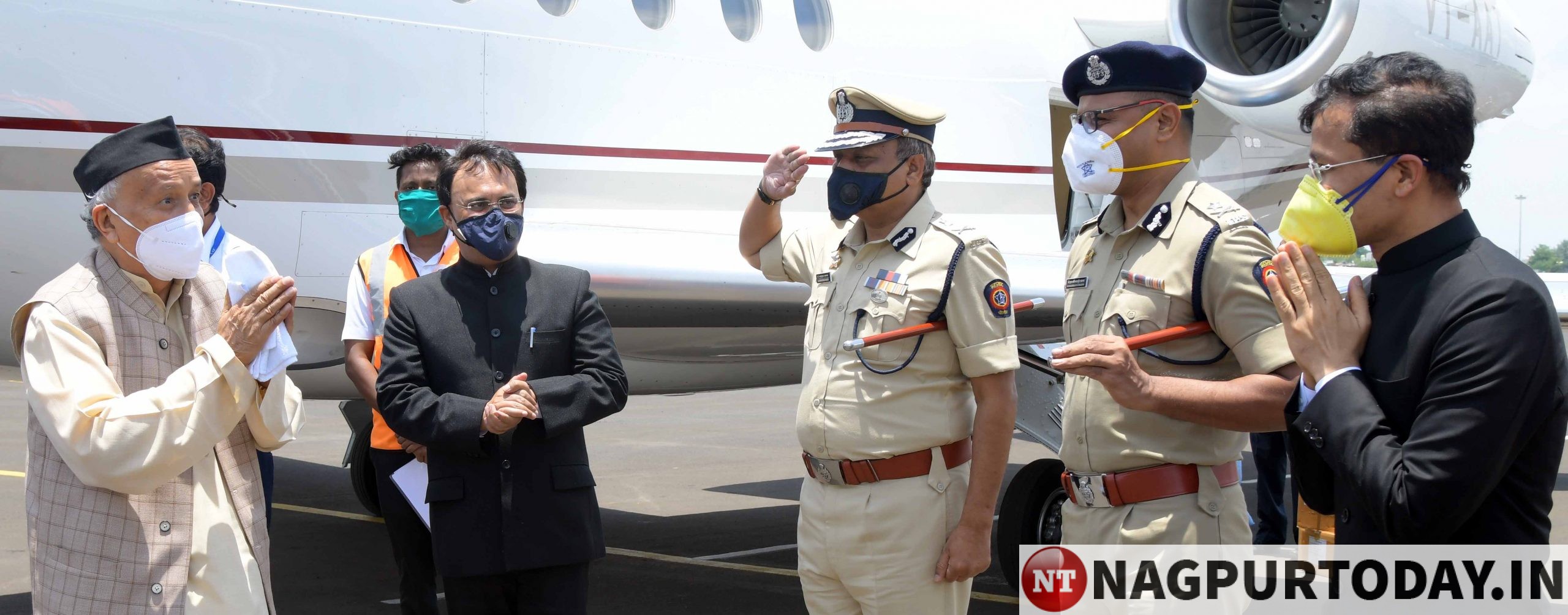 विमानतळावर राज्यपालांचे विभागीय आयुक्त डॉ. संजीव कुमार, पोलीस आयुक्त डॉ. भूषण कुमार उपाध्याय, नागपूर परिक्षेत्राचे विशेष महानिरीक्षक के. एम. मल्लिकार्जुन प्रसन्ना, महानगरपालिका आयुक्त तुकाराम मुंढे, जिल्हाधिकारी रविंद्र ठाकरे, नागपूर सुधार प्रन्यासच्या सभापती श्रीमती शीतल तेली-उगले, पोलीस अधीक्षक ग्रामीण राकेश ओला यांनी स्वागत केले. विमानतळावरील स्वागताचा स्वीकार करुन राज्यपाल भगत सिंह कोश्यारी राजभवनकडे रवाना झाले.