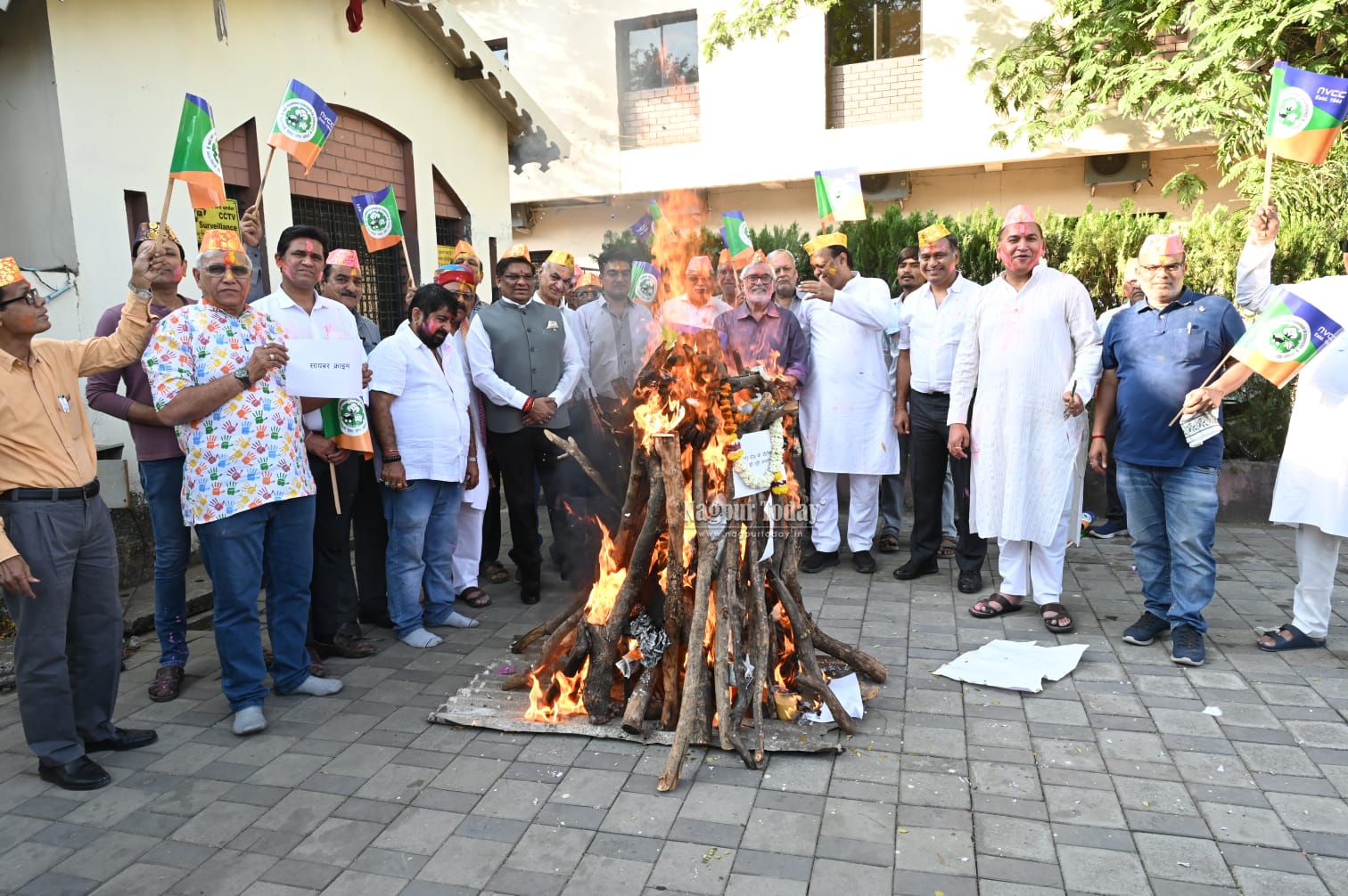 विदर्भ के 13 लाख व्यापारियों की अग्रणी व शीर्ष संस्था नाग विदर्भ चेंबर द्वारा प्रतिवर्षानुसार इस वर्ष भी होली दहन के दिन व्यापारी भाईयों के लिए होली मिलन का कार्यक्रम गुरूवार, दि. 2 मार्च 2026 को शाम 4.00 बजे से प्रेस क्लब, सिव्हिल लाईन्स, नागपुर में आयोजित किया गया है। जिसमें चेंबर द्वारा एल.बी.टी. विभाग, सायबर क्राइम व ऑनलाईन शॉपिग, शहर में ट्राफीक की समस्या की होली का दहन किया गया।