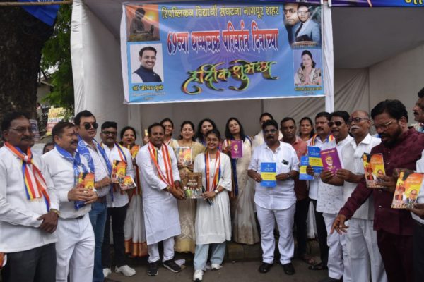 नागपूर: रिपब्लिकन विद्यार्थी संघटना, नागपूरच्या वतीने लक्ष्मी नगर चौक येथे आयोजित कार्यक्रमात डॉ. बाबासाहेब आंबेडकरांच्या विचारांवर आधारित साहित्याचे वितरण करण्यात आले. या कार्यक्रमात उपस्थितांनी डॉ. आंबेडकरांच्या पावित्र्याचा अनुभव घेतला आणि समाज परिवर्तनाच्या महत्त्वाचा संदेश घेतला.