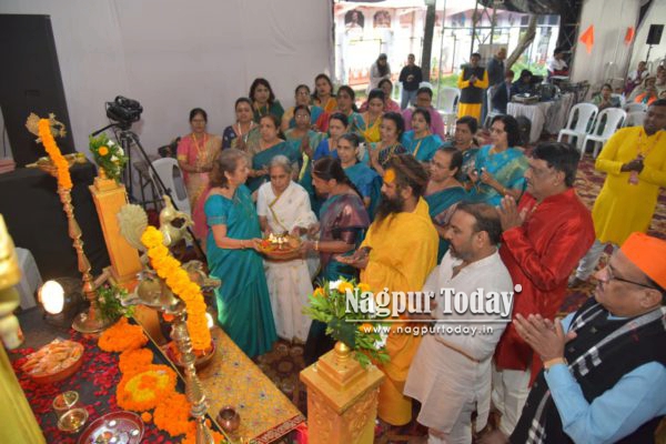 मान्यवरांचे स्वागत विजय फडणवीस, संध्या कातरकर, सीमा सराफ आणि मनीषा दुबे यांनी केले.