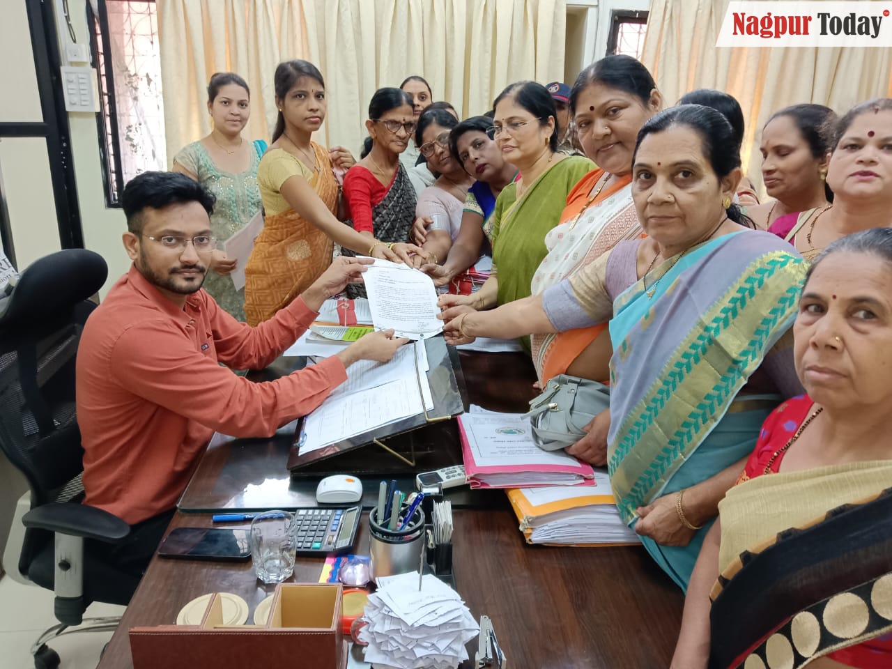 महाराष्ट्राचे मुख्यमंत्री यांना नागपूरचे जिल्हाधिकारी यांच्या माध्यमाने नागपूर शहर महिला कॅाग्रेसच्या अध्यक्षा ॲड. नंदा पराते यांच्या नेतृत्वात संगीता उपरीकर ,वंदना मेश्राम ,सुरेखा लोंढे, मंदा बोबडे, राजकुमारी फोपरे ,रेखा बरवड ,मंदा शेंडे, मंजू पराते,,गिता हेडाऊ,शकुंतला वठ्ठीघरे,माया धार्मिक,अनिता हेडाऊ, ज्योती जारोंडे,जयश्री धार्मिक, किरण अड्याळकर,पुष्पा शेंडे यांच्या शिष्टमंडळाने “मुख्यमंत्री-माझी लाडकी बहीण” या योजनेला ३ महिन्यापर्यंतची मुदत वाढविण्यात यावी व अर्जासाठी असलेल्या जाचक अटी त्वरित रद्द करावी यासंबंधी निवेदन देण्यात आले.