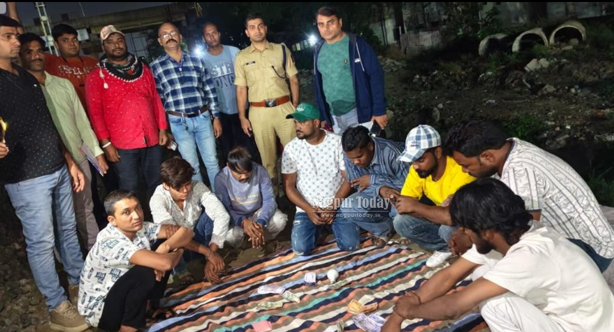 Nagpur: In a late-night crackdown on illegal activities, Sadar Police in Nagpur busted a gambling racket operating near railway tracks in the Goa Colony area, booking a total of nine accused and seizing cash and valuables worth Rs 22,700.