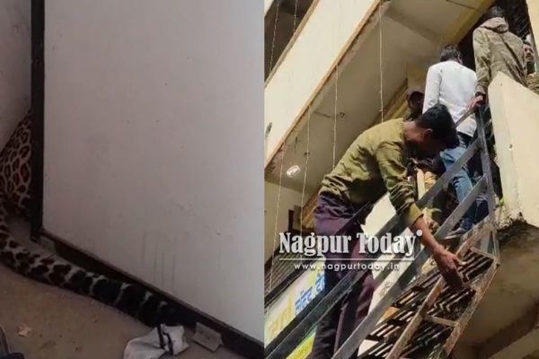Nagpur: A shocking incident unfolded in the densely populated Bhandewadi area of the city when a leopard entered a residential building and made its way to the second floor. The incident caused panic in the locality, with residents gathering below the building.