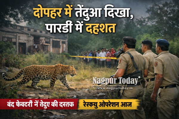 नागपुर -पारडी इलाके के शारदा नगर में मंगलवार दोपहर उस समय हड़कंप मच गया, जब प्रकाश हाईस्कूल से सटी करीब छह वर्षों से बंद पड़ी लोहा फैक्टरी के सुनसान परिसर में तेंदुआ देखे जाने की खबर फैली। दोपहर करीब 12.30 बजे परिसर में काम कर रहे कुछ मजदूरों की नजर अचानक तेंदुए पर पड़ी। पल भर में अफरा-तफरी मच गई। मजदूरों ने जान बचाकर बाहर भागते हुए फैक्टरी मालिक को सूचना दी, जिसके बाद वन विभाग को अलर्ट किया गया।