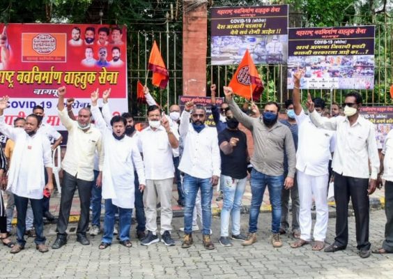 नागपुर – कोरोना च्या पार्श्वभूमीवर महाराष्ट्र नवनिर्माण वाहतुक सेने तर्फे असंघटित क्षेत्रातील मजूर कामगार इत्यादींच्या जीवितांचे रक्षण व जनजीवन सुरळीत करण्या संदर्भात, तसेच संपूर्ण भारत देशात मार्च २०२० पासून कोरोना महामारी रोगाच्या पार्श्वभूमीवर कायदा व आपत्ती निवारण व्यवस्थापन कायद्याअंतर्गत विविध निर्बंध लावल्याने जनजीवन विस्कळीत झाले असून देशाची अर्थव्यवस्था हालावली म्हणून आज सोमवारी ७ सप्टेंबरला संविधान चौकात, जिल्हाध्यक्ष सचिन धोटे यांच्या नेतृत्वात आंदोलन करण्यात आले. तसेच विभागीय आयुक्त यांना याबाबत निवेदन देण्यात आले.