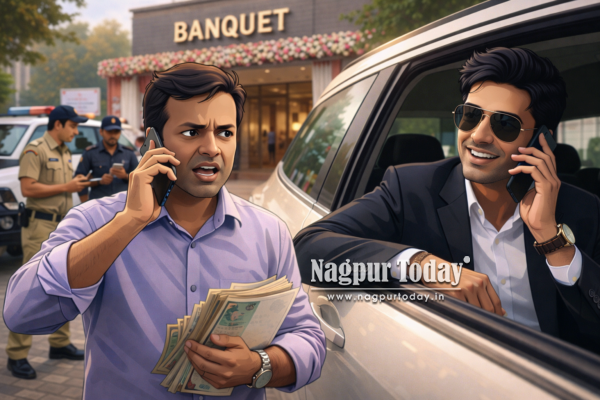 The complainant, Vijay Talewar, a resident of Ramdaspeth, owns Sai Vatika Lawn and Sai Mauli Banquet in the Bajaj Nagar area. Trouble began when Parshuram Dighore, who claimed to be the PA to Food and Drug Administration Minister Narhari Zirwal, booked the banquet hall for his daughter’s wedding on December 11. The lawn was also booked for three days to accommodate guests said to be connected to the minister.