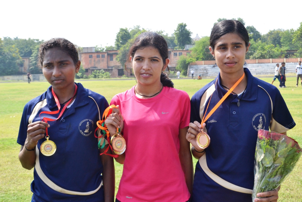In the male event, Surendra Kumar from Deen Dayal Upadhyay Gorakhpur University won the gold medal. The silver medal went to Shanender Singh of Punjabi University, Patiala, while Datta Borse from Pune University bagged the bronze medal.