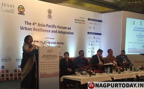 श्रीमती जिचकार चतुर्थ एशिया पैसिफिक फोरम आन अर्बन रिसाइलेंस एंड एडापशन- रिसाइलेंट सिटीज एशिया पैसिफिक कांग्रेस 2019 का स्वागत भाषण दे रही थीं ।