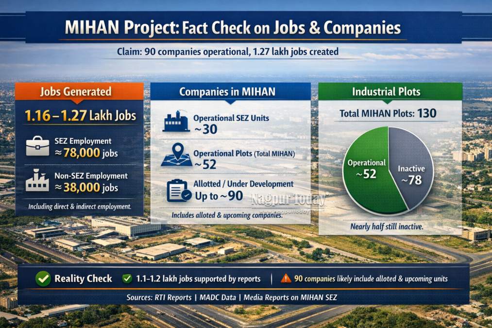 फैक्ट चेक: MIHAN के आंकड़े-क्या नागपुर में 90 कंपनियां सच में 1.27 लाख लोगों को रोजगार दे रही हैं?