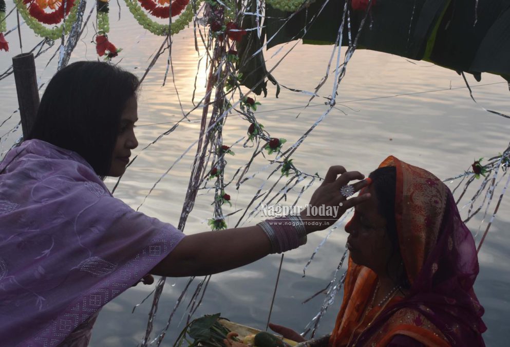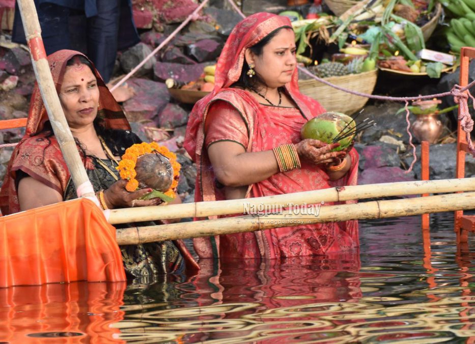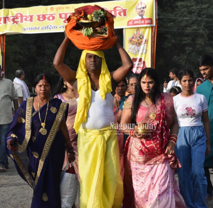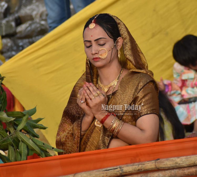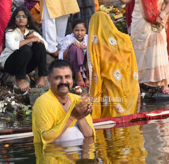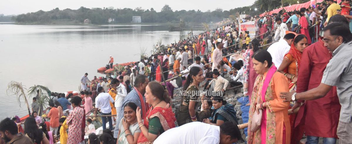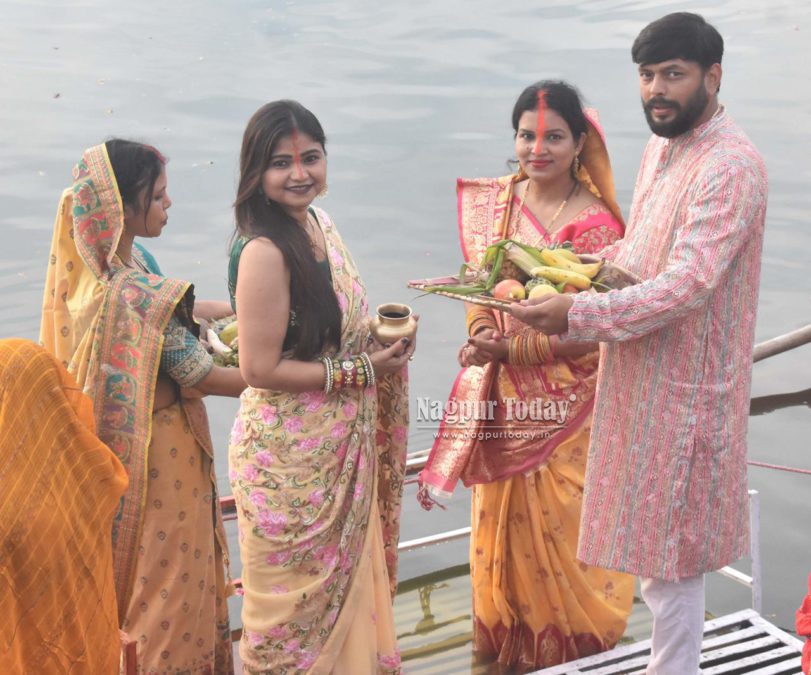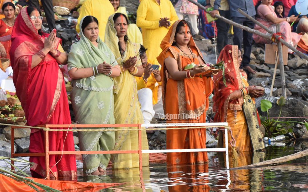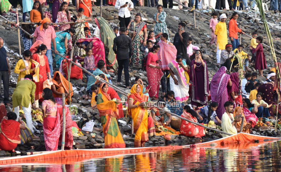 Nagpur: The vibrant festival of Chhath Puja, one of the most important religious celebrations for the North Indian community, was observed with great devotion and enthusiasm across Nagpur on Monday. Large numbers of devotees gathered at Ambazari Lake, Futala Lake, Police Line Takli, and Gorewada Lake to offer prayers to the setting sun.