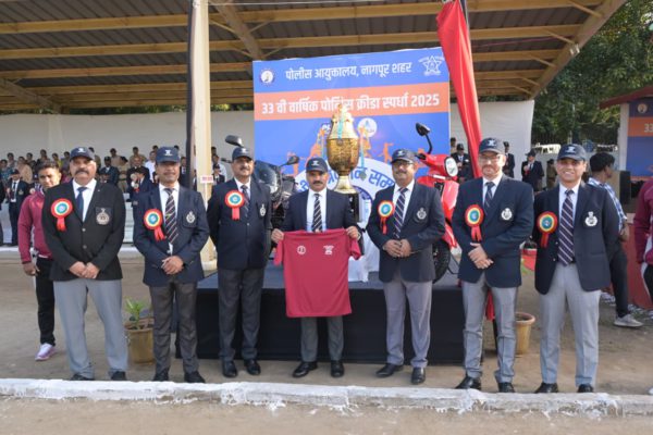 Nagpur: The 33rd Annual Police Sports Competition – 2025, organized under the Nagpur City Police Commissionerate, began with great enthusiasm today. The grand opening ceremony took place at the Shivaji Stadium located in the Police Headquarters complex on Katol Road. Around 189 participants representing four police teams are competing in this year’s event.