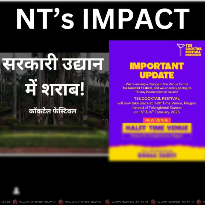 ‘Nagpur Today’ questioned how permission was granted for an alcohol-related event at a government-owned park like Telankhedi. The issue was raised with senior police officials, leading to an administrative intervention. Following the media coverage, authorities took action, and the TSS Cocktail Festival will now be hosted at ‘Half Time,’ Khasra 54, Drugdhamna, Nagpur, instead of Telankhedi Garden.