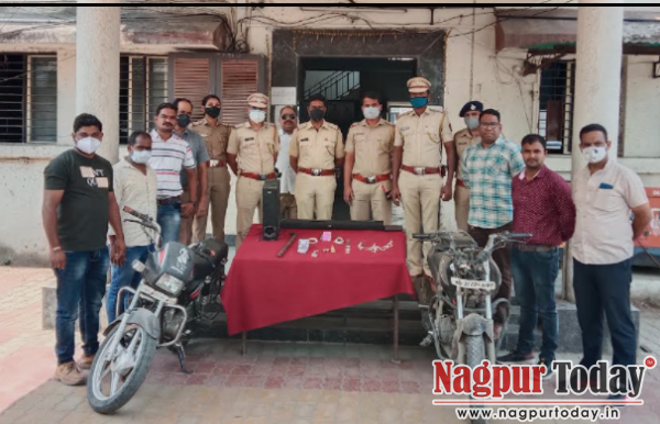 अटक तीन आरोपीमध्ये नवीन मिलिंद बारसे वय 20 वर्षे रा दुर्गा सोसायटी येरखेडा, फैजाण वकील अहमद वय 18 वर्षे रा मोमीनपुरा नागपूर, संजोग होले वय 22 वर्षे रा टिमकी नागपूर असे आहे तर आकाश व मुनिर नामक दोन आरोपी अजूनही अटकेबाहेर आहेत.या आरोपिकडून काळ्या रंगाची वाहन हिरो कंपनीची दुचाकी क्र एम एच 31 ई डी 6187 किमती 20 हजार रुपये, एक लोह्याचे रॉड किमती 200 रुपये, नगदी रक्कम 3000 रुपये, हिरो स्प्लेडर दुचाकी क्र एम एच 40 ए व्ही 6044 किमती 20 हजार रुपये, एक ऑटो क्र एम एच 40 -2445किमती 1 लक्ष रुपये, एक पितळी ची मूर्ती 500 रुपये, 20 ग्राम सोन्याचा डल्ला किमती 1 लक्ष रुपये, चांदीचा कमरपट्टा किमती 6 हजार रुपये, चांदीचा आकडा किमती 500 रुपये,चांदीचा पैंजनवजनी किमती 3 हजार रुपये,चांदीचे 7 नग किमती 3 हजार रुपये असा एकूण 2 लक्ष 58 हजार रुपये चा मुद्देमाल जप्त करण्यात आला.