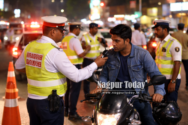 Nagpur: In a major enforcement drive on New Year’s Eve, the Nagpur City Traffic Police launched an intensive crackdown against drunken driving and other traffic violations to ensure public safety during celebrations. Special teams were deployed across major arterial roads, nightlife hubs and residential areas from 9 pm onwards on December 31.