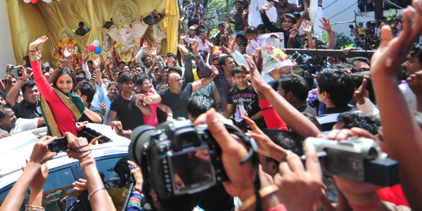 Nagpur Page 3 : On Saturday Rani Mukharjee was in city and visited Hill Top to worship Lord Ganesha – Nagpur Today cameraman caught some images of the excited crowd who was their to have one glimpse of the actress.