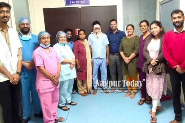 Dr. Vasant Gawande, Chief Medical Superintendent, SMHRC, informed that the surgery was successfully performed by Dr. Paresh Korde, assisted by Dr. Prince Verma. The neuroanaesthesia team was led by Dr. Prachi Korde, Associate Professor and Senior Neuro-anaesthesiologist, assisted by Dr. Shivani Wargantiwar (Assistant Professor). Dedicated perioperative and postoperative nursing care was provided by Sr. Vaishali Kalmegh (OT In-charge), Sr. Nandini Porte (Ward In-charge), Sr. Soniya Dongre, Sr. Manisha Pine, and Br. Prashant Gosavi. Administrative support during hospitalization was extended by Ms. Divya Sejule (OT Manager), Shri Ahmindra Jain (Cashless Cell In-charge), and Shri Ashish Darne (Floor Manager).