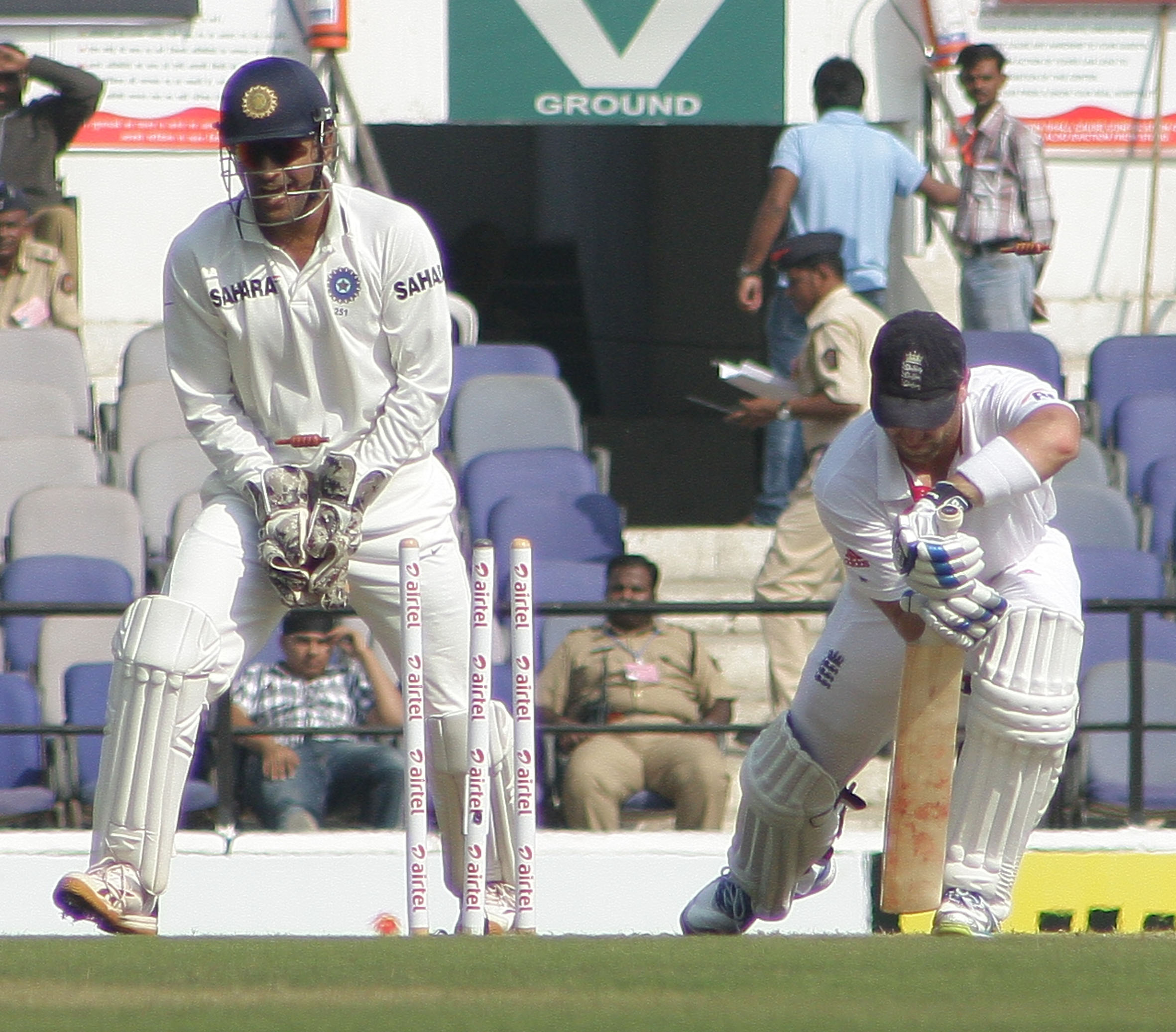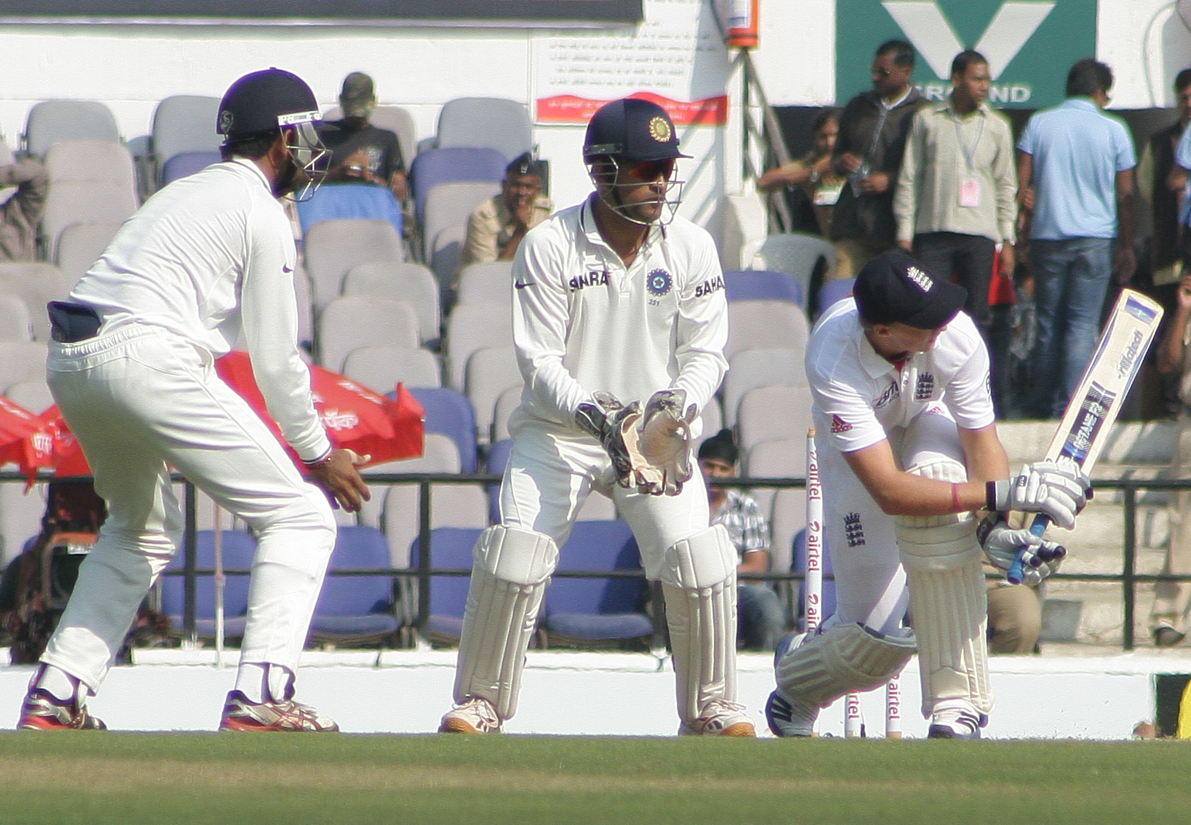 Ashwin to bowl the second over as Root and Swann pick a single each to the long-on fielder as India continue with their policy of keeping things tight. Root flicks the last ball of that over to fine leg for another single.