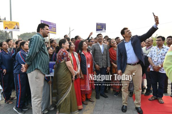 Additional Commissioners Ms Vasumana Pant and Ms Vaishnavi B, Deputy Commissioners, SVEEP Nodal Officer Dr Ranjana Lade, RTM Nagpur University NSS Director Sopan Dev Pise, Public Relations Officer Manish Soni, Sports Officer Dr Piyush Ambulkar, SVEEP Coordinator Sushant Chimankar, Social Development Department officials Rajesh Meshram and Vinay Tembhurne, along with NSS students from Nagpur Veterinary College, NMC officers, staff members, and a large number of youths were present.