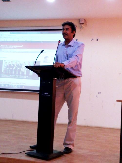 The later hour of seminar was engaged by Mr. Kaustubh Katdare, who is the founder of www.crazyengineers.com. He briefed the students about his website & history behind it. His website is said to provide a great platform for engineers all over the world. This is a place where top level technical discussions are done & engineers get their queries resolved. With a huge no. of aptitude tests available on the site, it helps the students in their campus placements as well.