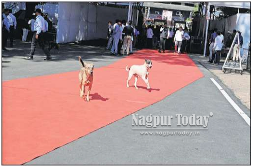Nagpur: Amid the excitement, tight security, and political buzz marking the opening day of the Winter Session of the Maharashtra Legislature on Monday, an unexpected duo emerged as the most photographed ‘VIPs’ of the morning — two carefree stray dogs, who casually walked onto the red carpet laid out to welcome ministers, MLAs, and top dignitaries.