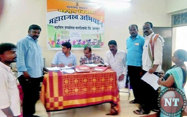 पारशिवनी तालुक्यातील नगरपरिषद कन्हान-पिपरी परिसरात बुधवार दि. १३ जुन २०१८ ला सकाळी ११ ते ६ वाजेपर्यंत राजस्व शिबीराचे आयोजन केले होते. या शिबीरात तहसिलदार वरूण सहारे यांच्या मार्गदर्शनात नायब तहसिलदार प्रेम कुमार आडे यांच्या नेतृत्वाखाली जातीचे प्रमाणपत्र – १०५ , उत्पन्नाचे दाखले – १३९ , अधिवास प्रमाणपत्र – ४७ , तलाठी उत्पन्नाचे दाखले – १२६ , शपतपत्र – १३८, ७/१२ वाटप – ४७, दुय्यम शिधापत्रिका – ६९ , शिधापत्रिकेत नाव कमी व दाखल – ९७, आधार कार्ड काढणे व दुरूस्ती – ८७ , इतर दाखले आदी तयार करून देण्यात आले .