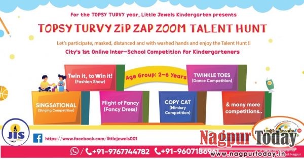 Nagpur: Little Jewels Kindergarten, a Feeder Kindergarten of Jain International School, Nagpur hosted its first ever virtual inter-school event, ‘Topsy Turvy Zip Zap Zoom Talent Hunt 2020-21’ for the Topsy Turvy year 2020-21. The objective of this event was to provide a platform to all the kindergartners from all over India to showcase their skills and talents.