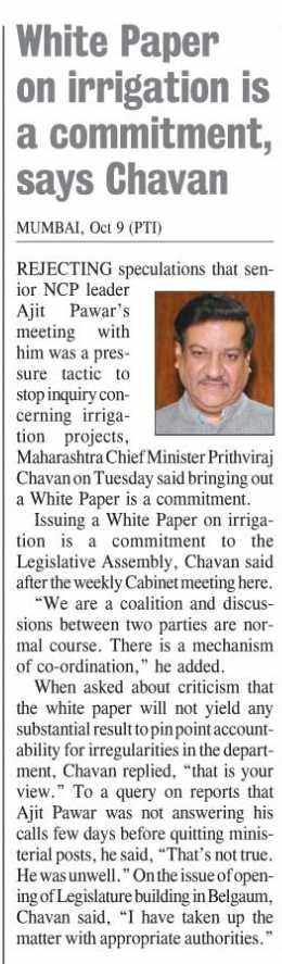 Published On : Wed, Oct 10th, 2012 By Nagpur Today White paper on irrigation is a committment, says Chavan – The Hitavada Watch Live News Shop With Nagpur Advertisement Watch LIVE TV Shop@NAGPUR GET YOUR OWN WEBSITE FOR ₹9,999 Domain & Hosting FREE for 1 Year No Hidden Charges Advertisement Advertisement