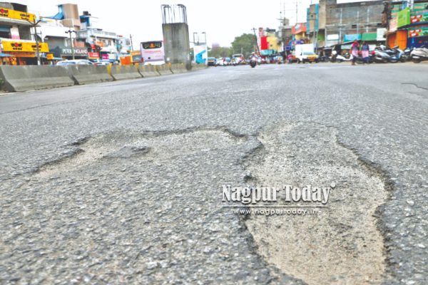 Nagpur: The roads in Chhatrapati Nagar have turned into a nightmare for residents and commuters alike, with deep potholes, broken asphalt, and pools of stagnant water making even short journeys perilous. Despite numerous written complaints to the Nagpur Municipal Corporation (NMC) and the Road Department, not a single effective repair has been carried out, exposing the alarming negligence of the authorities.